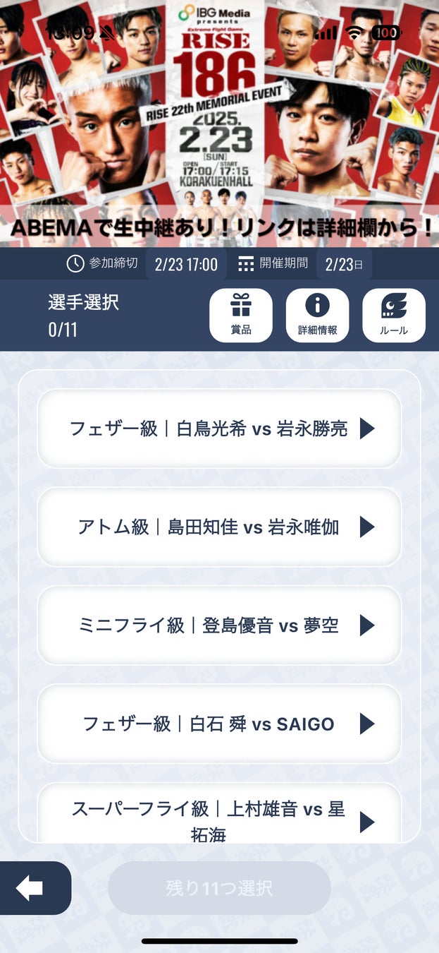 『IBGメディア presents RISE186-RISE 22th Memorial event-』全試合の勝敗予想企画をスポーツ予想アプリ「なんドラ」で開催