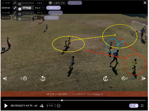 ②撮影した映像を「SPLYZA Teams」で分析し、子どもたちのディスカッション、コーチによる指導を実施