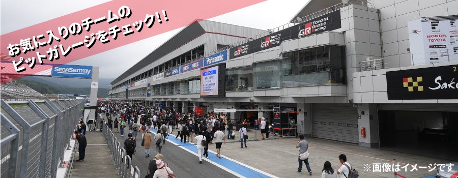 ピットロード側から、お好きなチームのピットガレージをご覧いただきます。