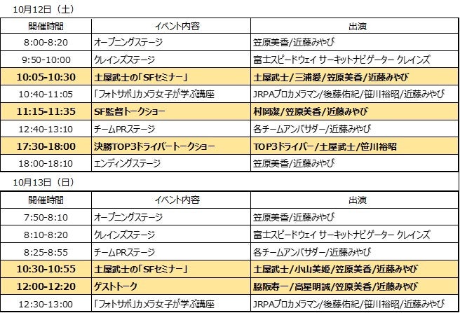 また、通常イベント広場で実施している決勝レースTOP3 ドライバートークショーやゲストトークショーを始め、SUPER FORMULAならではの豪華なステージコンテンツも実施いたします。