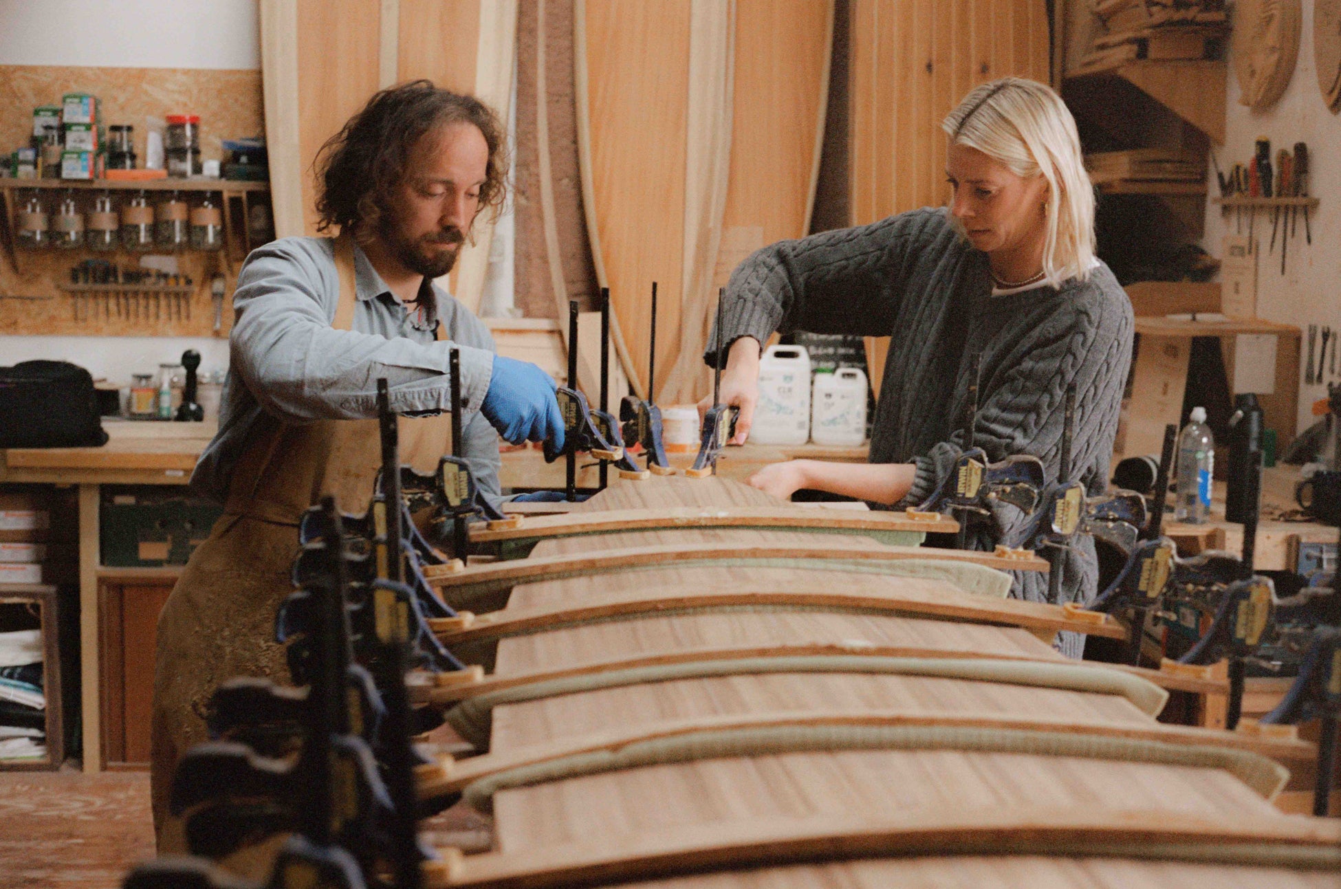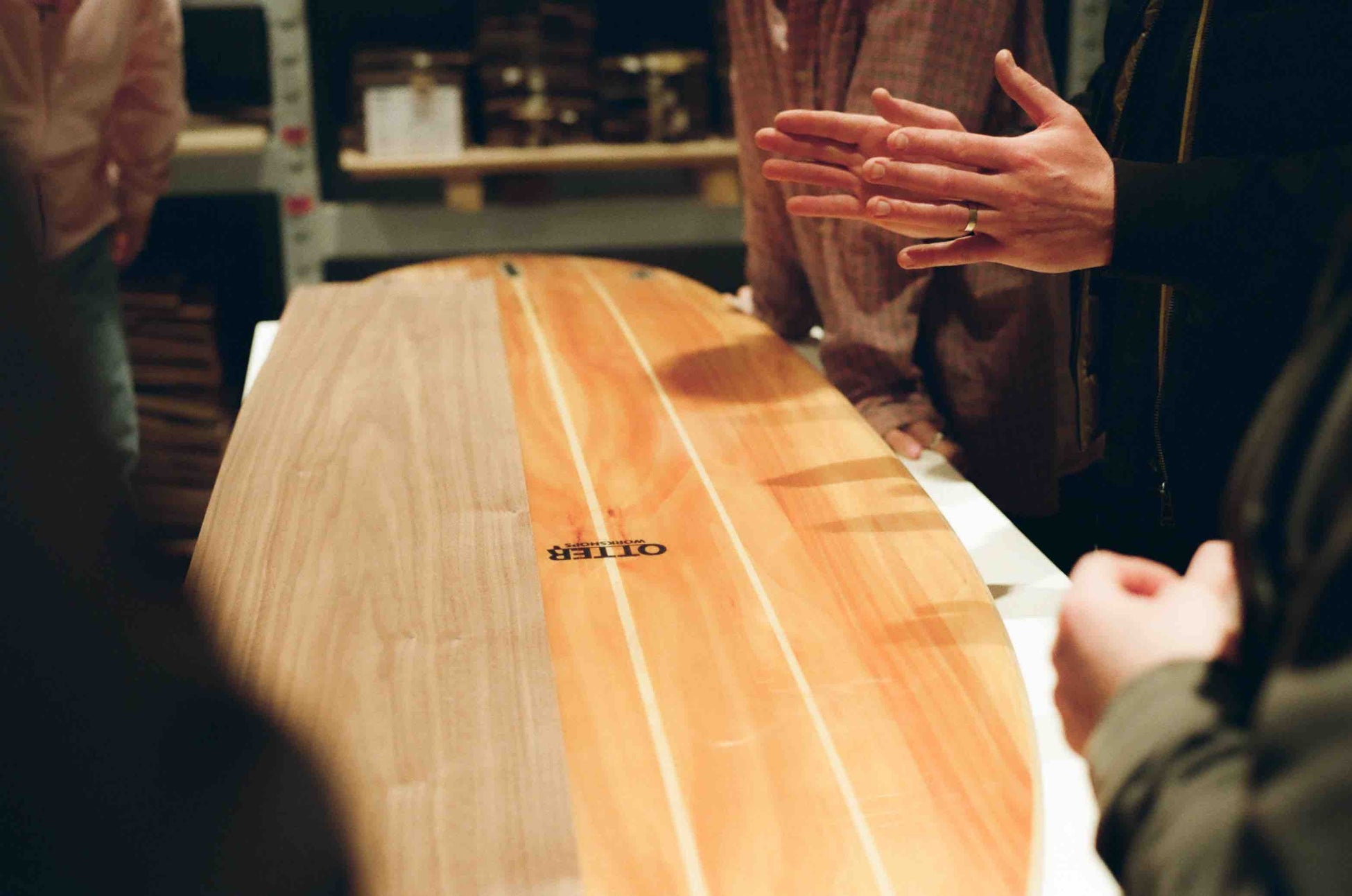 サーフボードは、クルー工場にある木材工房にて、ひとつひとつ手作業で制作。使用した素材は、通常ベントレーのグランドツアラーの内装に用いられる希少なコアウッド。クルー本社を訪れたマーニーレイズ創設者のリンジー・ホランド氏とオッターサーフボード創設者のジェームズ・オッター氏が、ベントレーの熟練した職人の助言をもとに選定しました。選ばれたコアウッドは、伝統的なハワイの木製サーフボードへの敬意を込めて、リンジー・ホランド氏とジェームズ・オッター氏が、ベントレーが取り扱う9種のウッドヴェニアから厳選したものです。ベントレーは創業以来、サステナブルな方法で調達した木材を使用し、ラグジュアリーで洗練されたインテリアづくりにこだわり続けてきました。今日においても、世界中から選び抜かれた最高級の木材が、そのクラフツマンシップを支える要となっています。