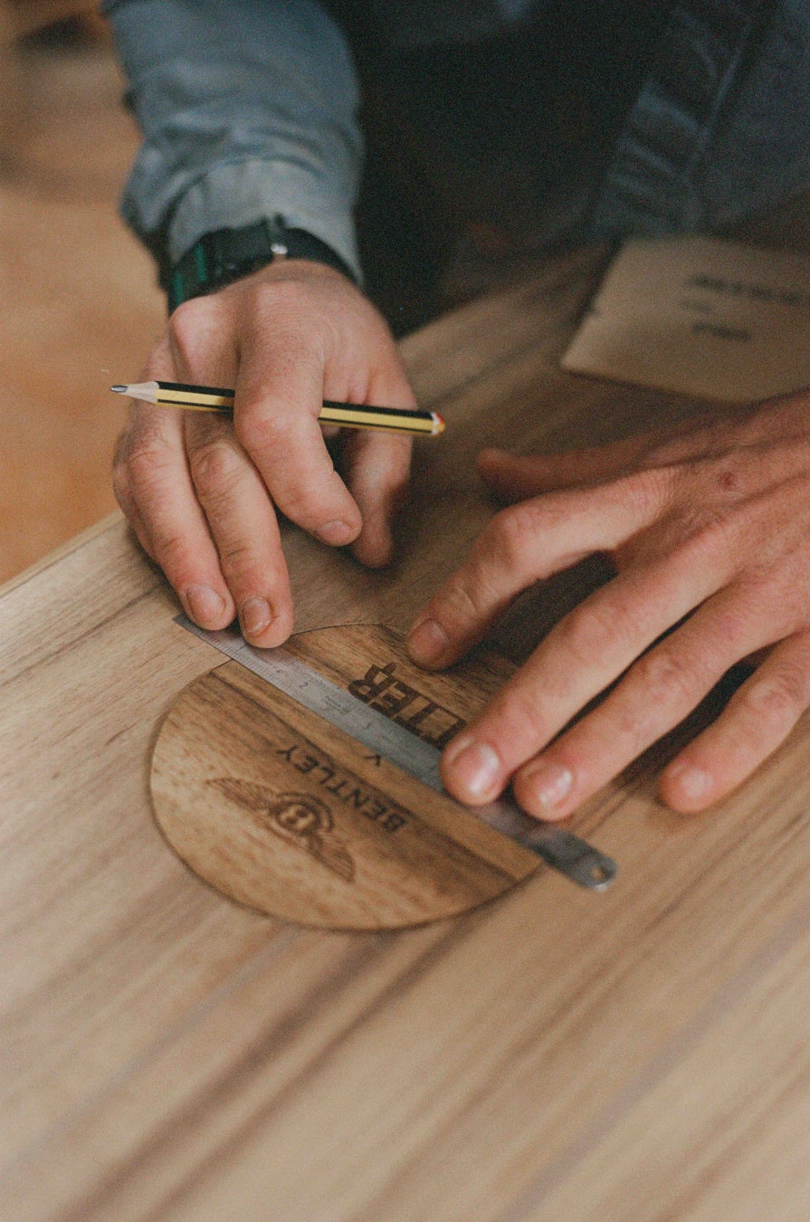 クルーに拠点を置くベントレーの熟練職人たちは、ベントレー ミュルザンヌの生産終了以来使用していなかった伝統技法を用い、希少な木材を丹念に仕立てました。その後、この素材はコーンウォールのジェームズ・オッター氏の工房へと送られ、彼の手によりひとつひとつ丁寧に削り出され、世界に一つだけの特別なサーフボードが誕生しました。完成したサーフボードには、ベントレー、マーニーレイズ、オッターサーフボードの3社のロゴを、制作チームがエッチング加工で美しく刻んでいます。