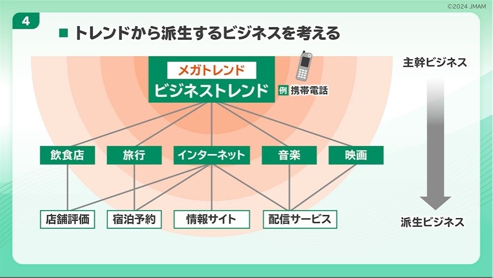 ●派生ビジネスの探し方や今後のビジネスを考える方法を学びます。