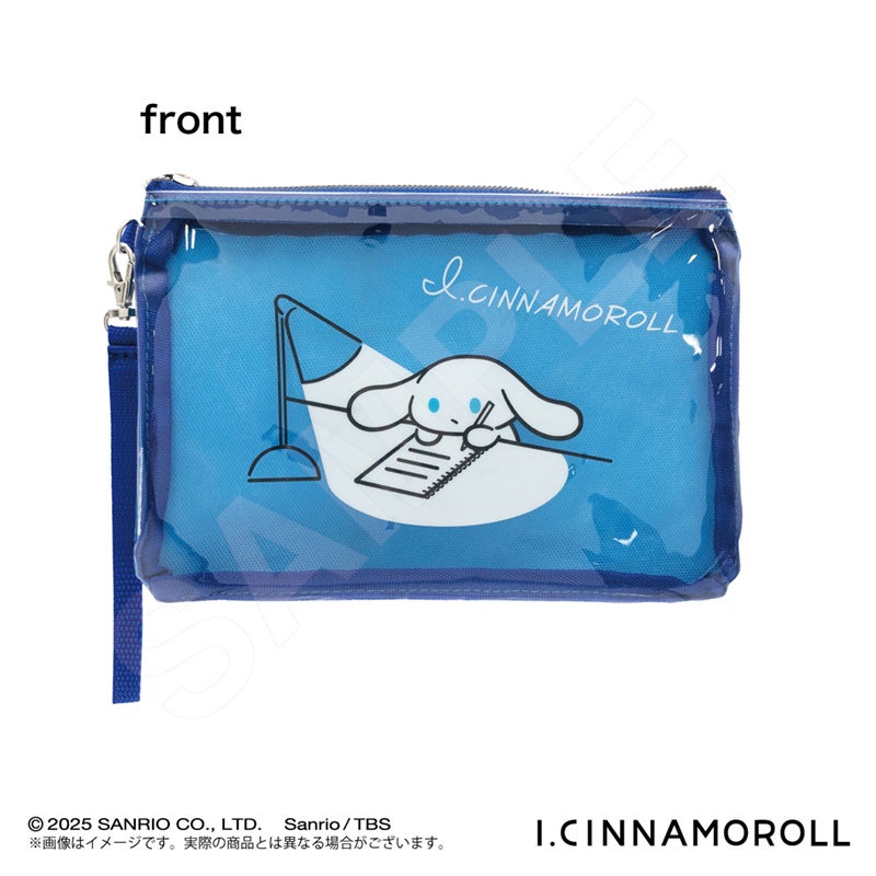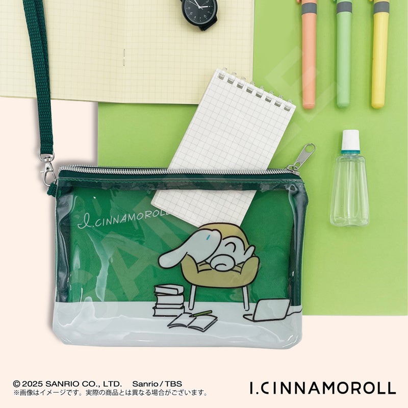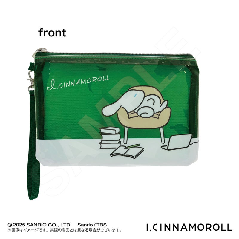 夏にぴったりの涼しいカラー「ブルー」「グリーン」の2色展開。PVC素材の艶感がおしゃれなポーチです。それぞれ「オン」「オフ」のシナモンの姿が描かれています。文房具やお好きな小物を入れて、シナモンを持ち運べるアイテムです。