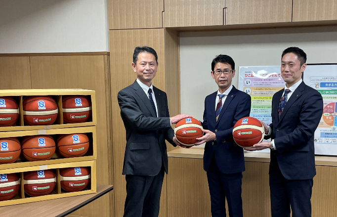 バスケットボール界の未来を担う子どもたちをサポートするため、彦根市教育委員会へバスケットボールを寄贈(2023/2/24)