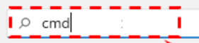 Step1:検索アイコンをクリックして「cmd」と入力し、コマンドプロンプトを探します。