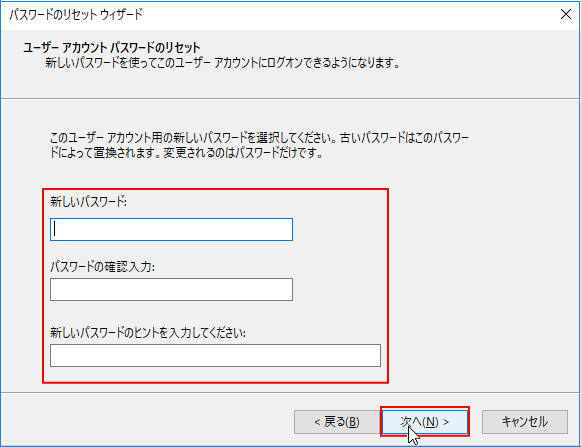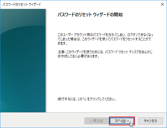 Step4:「パスワードのリセットウイザードの開始」が表示されるので「次へ」をクリックします。