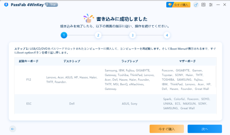 Step3:起動ディスクが作成されたら、画面に表示されるガイドに従い管理者パスワードを削除したいパソコンを立ち上げます。