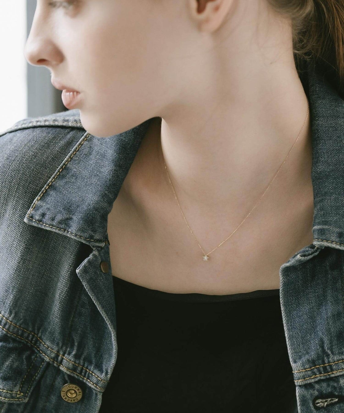 小さな星モチーフが輝く、K10イエローゴールドの華奢ネックレス。シンプルで繊細なデザインが首元を上品に彩り、重ね付けにもぴったり。飽きのこないミニマルなフォルムは、普段使いから特別な日まで活躍する、大人の女性にふさわしい一品です。