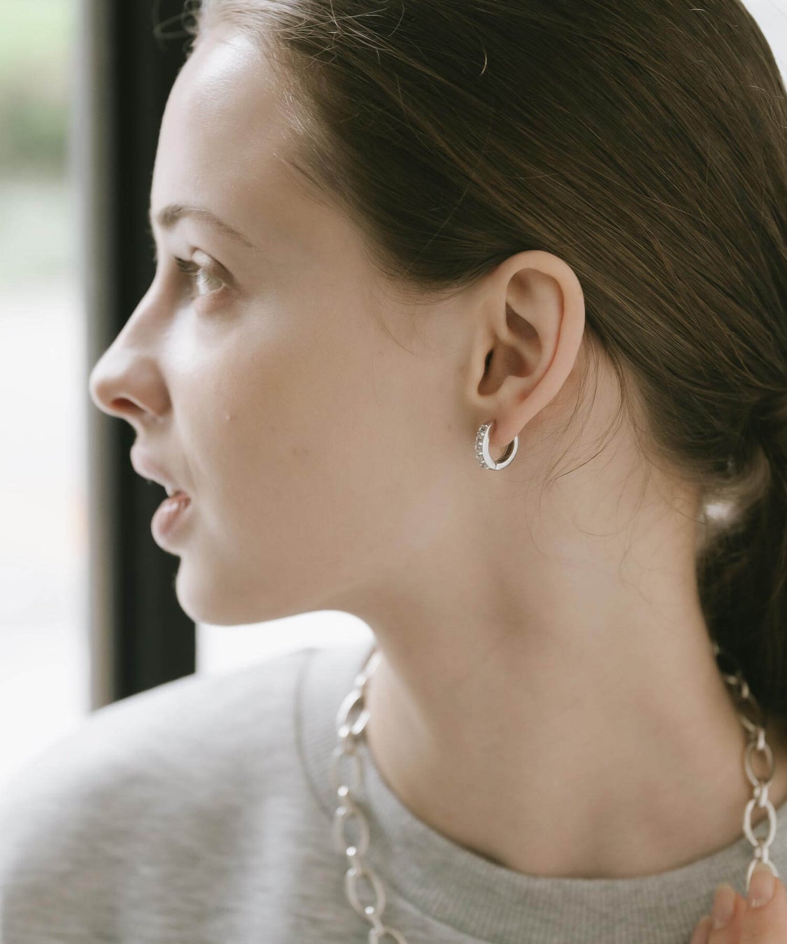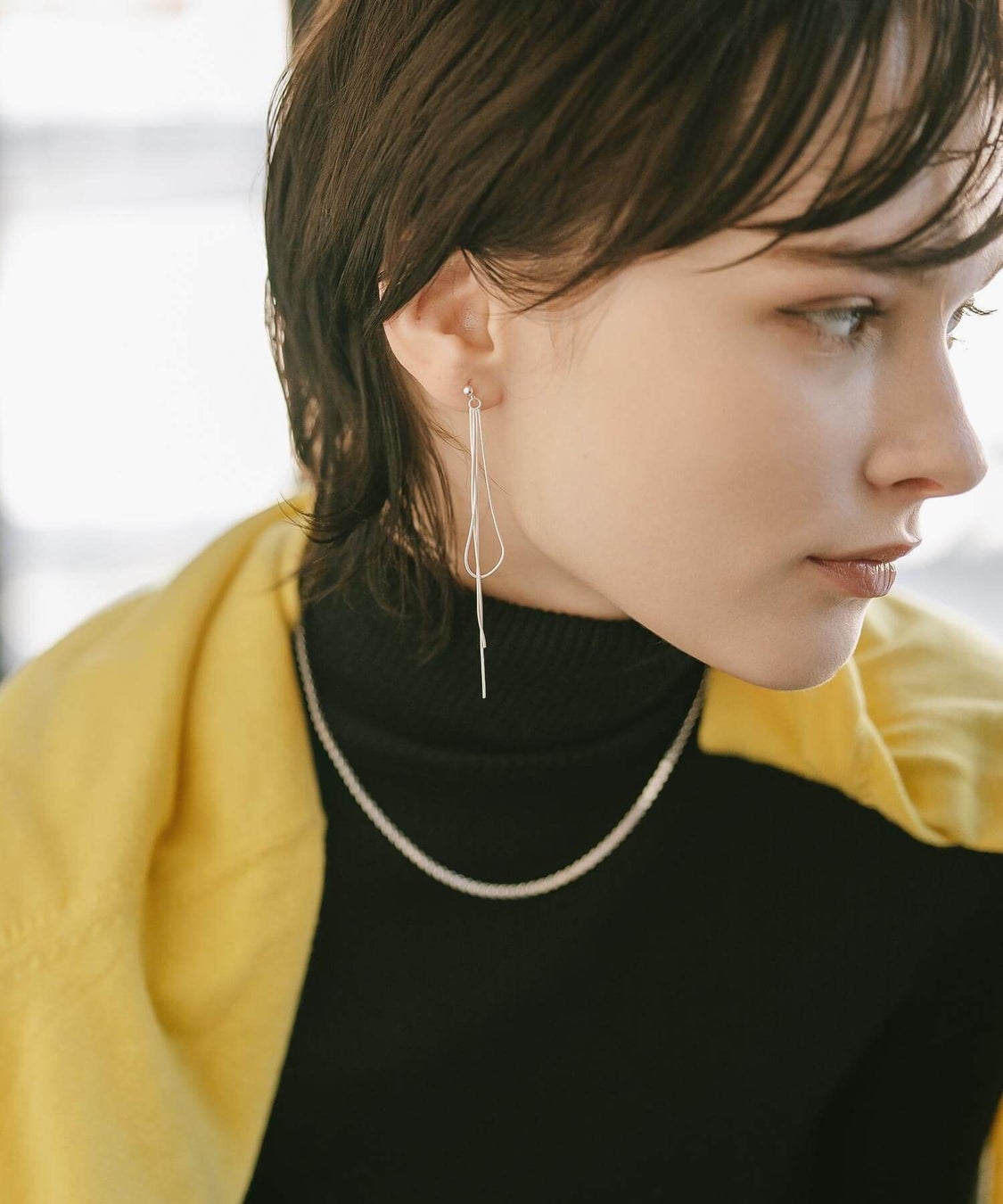 シルバー925のフープピアス・チェーンピアスは、繊細なデザインと上品な輝きが特徴。軽やかな印象で、春のコーディネートにさりげない華やかさを添えます。