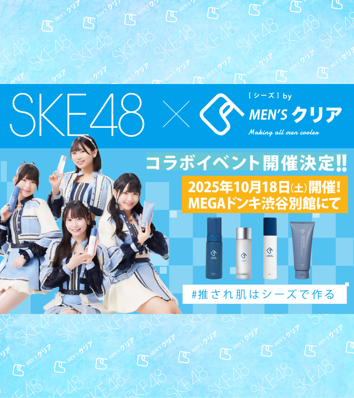 株式会社クリア(本社:東京都渋谷区、代表取締役社長:勝沼 潤)が展開するメンズ脱毛サロン「メンズクリア」と、スキンケアブランド「C’s(シーズ)」は、2025年10月18日(土)に開催するSKE48との特別なイベントに関する新たな情報を解禁。 当日はSKE48メンバーがファンの皆様一人ひとりに直接限定特典をお渡しします。どうぞ、当日を楽しみにお待ちください。