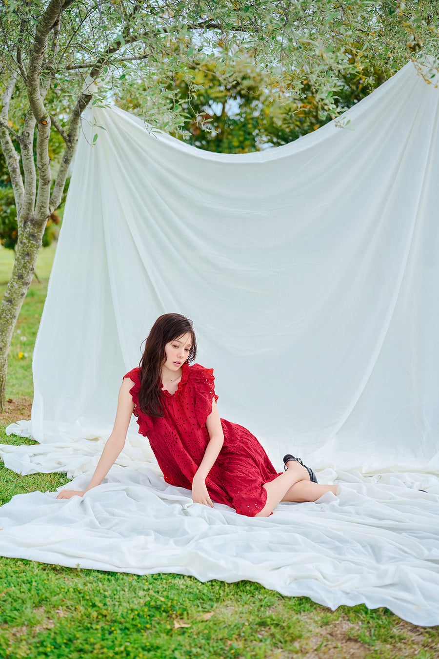 コットン素材×アイレット柄ワンピースは1枚でドラマティックな世界観が完成