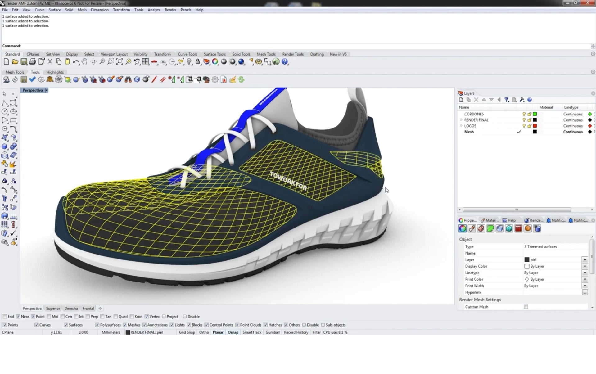 今回公開された動画は、Rhinocerosを使ってスニーカーの外張り布の3D設計から、ExactFlatでのパターン抽出の工程をフローチャートに沿って紹介されており、従来の2D設計と比べ、期間が約1/16に短縮、コストも1/5に削減され、費用対効果が、およそ8倍に拡張されました。