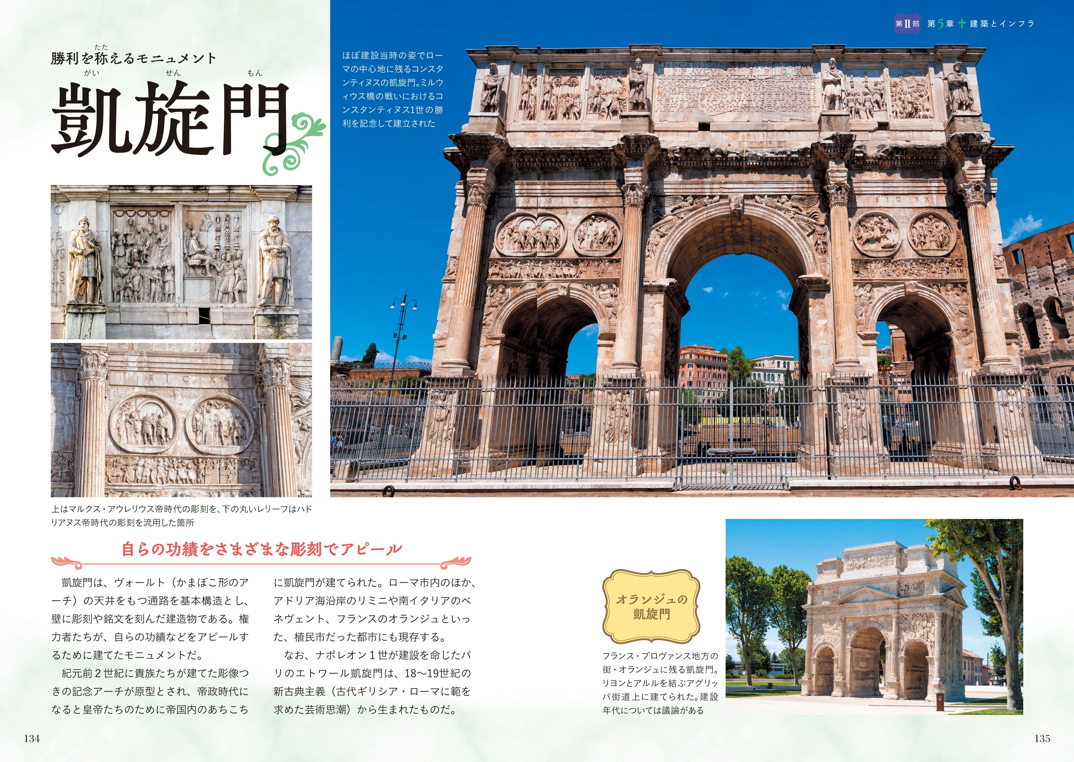 ローマの繁栄は、当時として卓越した建築・インフラ技術なくして語れません。水道橋、コロッセウム(闘技場)、凱旋門など、遺跡の写真も豊富に使用しながら解説します。