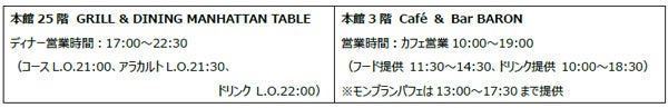 新宿ワシントンホテル(所在地:東京都新宿区、総支配人:和田 修治)の2つのレストラン(本館25階GRILL & DINING MANHATTAN TABLE、本館3階Café & Bar BARON)では2022年10月1日(土)より順次秋の季節にぴったりな新メニューを販売いたします。