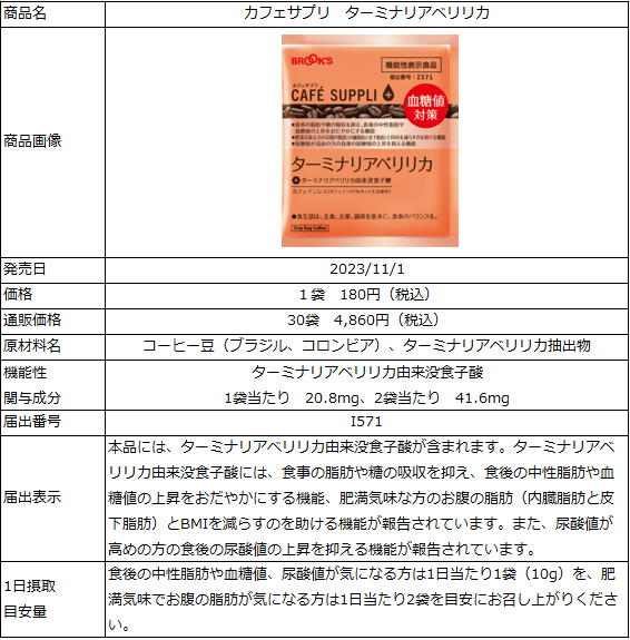 「カフェサプリ ターミナリアベリリカ」商品詳細はこちら https://www.brooks.co.jp/spl/?b=40021#bellirica