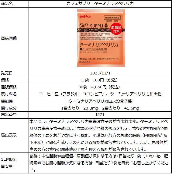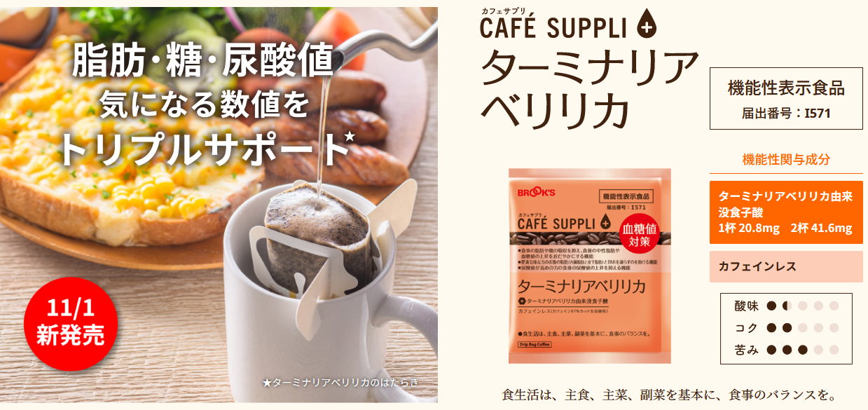 「脂肪・糖・尿酸値」の気になる数値をトリプルサポート!機能性表示食品のドリップバッグコーヒー「カフェサプリ ターミナリアベリリカ」新発売!