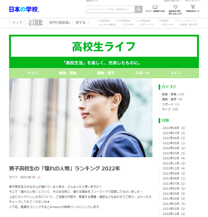 高校生ライフ「男子高校生の「憧れの人物」ランキング2022年」:https://school.js88.com/koukousei/life/49