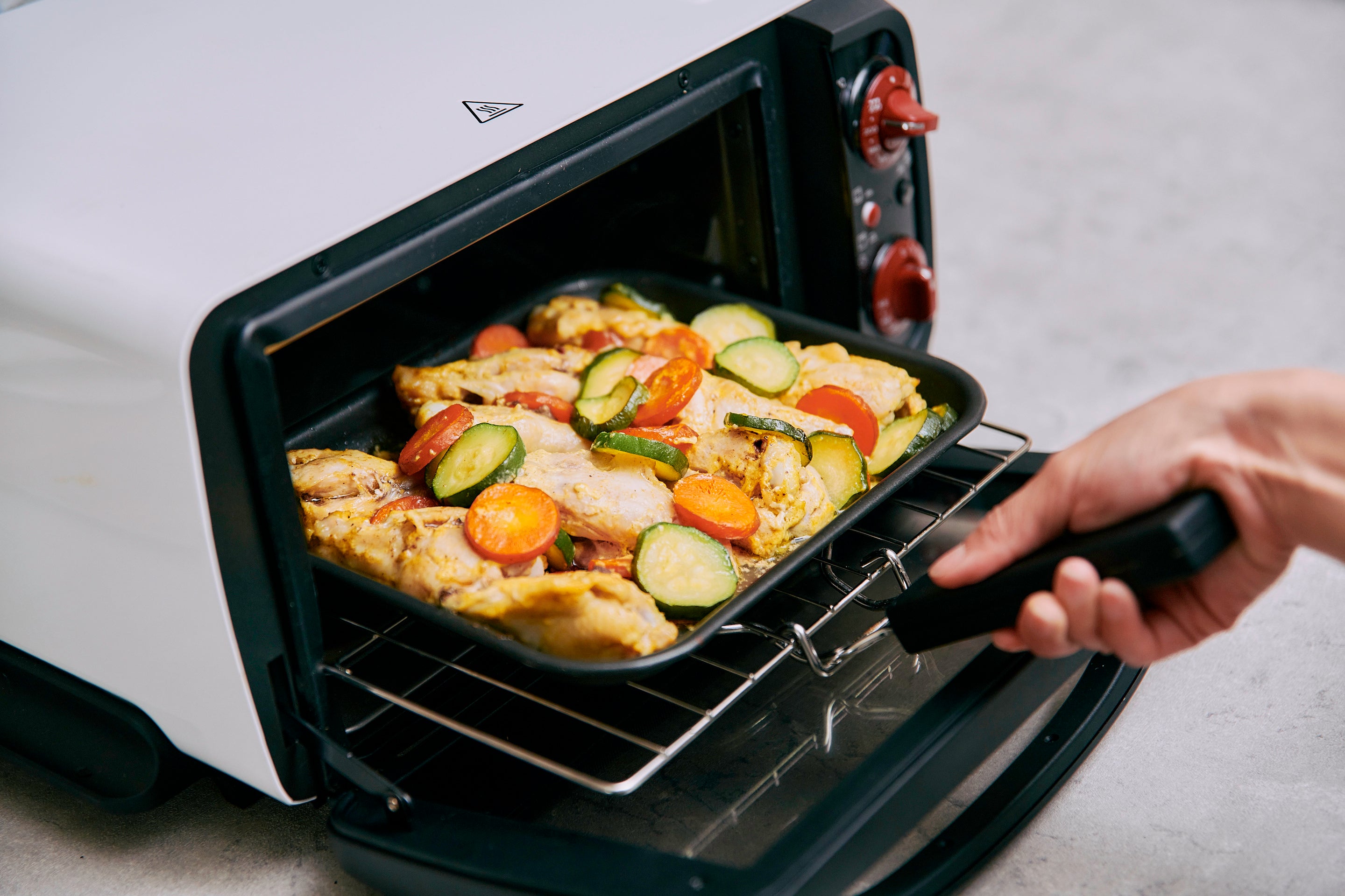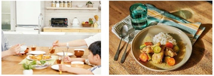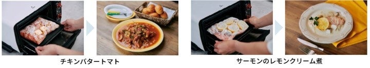 今回公開するレシピは、仕事や家事、子育てなどで忙しい毎日でも、もっとおいしく、そして家族が喜ぶ料理を用意したい、そんなママやパパにおすすめ、手間をかけずにおいしく仕上がる本格的な料理ばかりです。週末にそれぞれ肉や魚、野菜を一緒に下味をつけて冷凍しておき、食べる当日は冷凍のままコンベクションオーブンの付属のプレートにのせて焼き上げるだけで完成します。調理中の約30分間は、コンベクションオーブンにお任せなので、焼き上がりを待つ間に副菜の準備や他の家事などもでき、忙しい毎日の中でも時間を生み出してくれる、まさに「時産家電」として役立ちます。