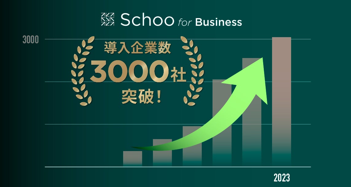 インターネットでの学びや教育を起点とした社会変革を行う株式会社Schoo(本社:東京都渋谷区、代表取締役社長CEO:森 健志郎、以下「スクー」)が提供する法人向けオンライン研修サービス「Schoo for Business」は、2023年3月に累計導入企業数3,000社を突破しました。