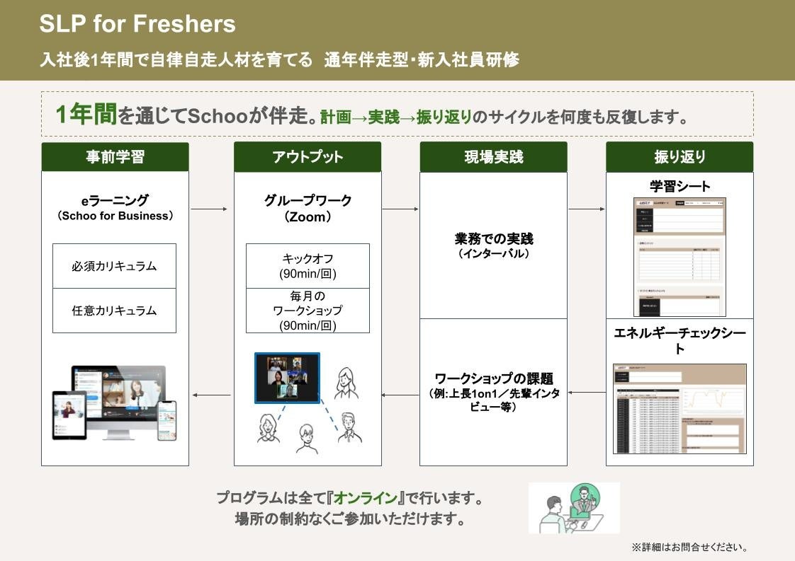 ②通年伴走型の新入社員研修プログラム「SLP for Freshers」