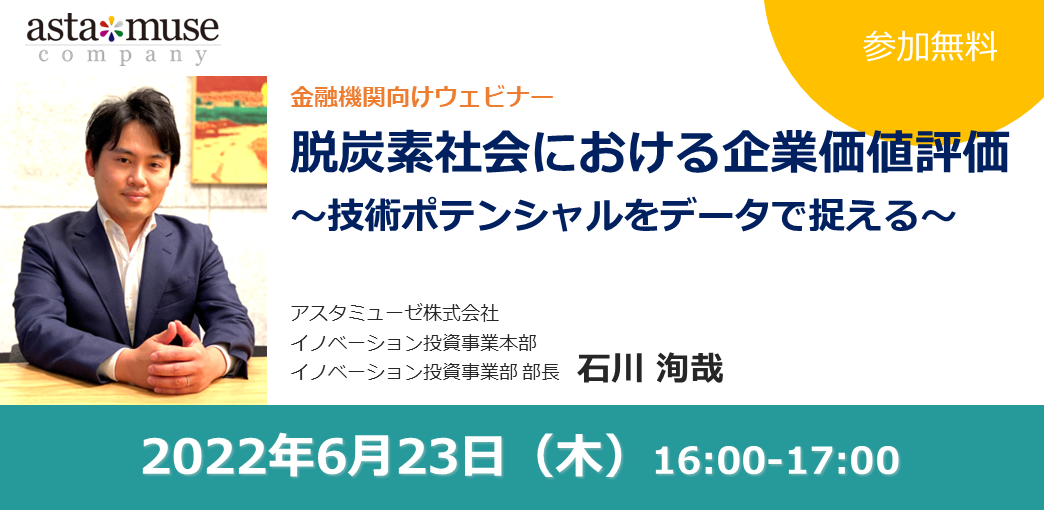 【6月23日(木)16時〜】アスタミューゼ主催ウェビナー「脱炭素社会における企業価値評価~技術ポテンシャルをデータで捉える~」