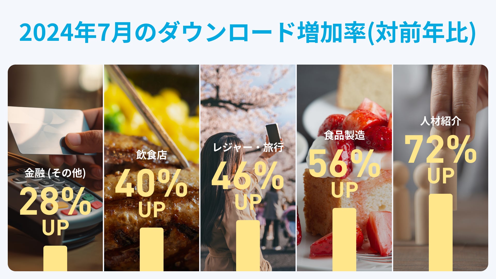 2023年5月に新型コロナウイルス感染症が5類に移行した後は、外出型消費が活性化しました。この流れに伴い、外食をはじめとする飲食業界やカラオケなどレジャー業界のアプリのダウンロード数が加速しました。