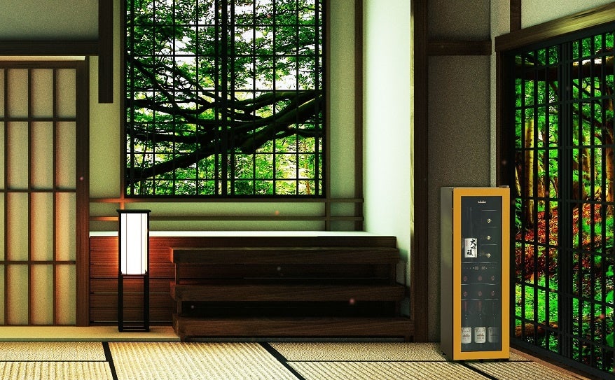 日本酒セラーで新酒もおいしい温度をキープ! 家庭用の小型&スリムなサイズの「サカリュエ」で一升瓶を縦置き保管