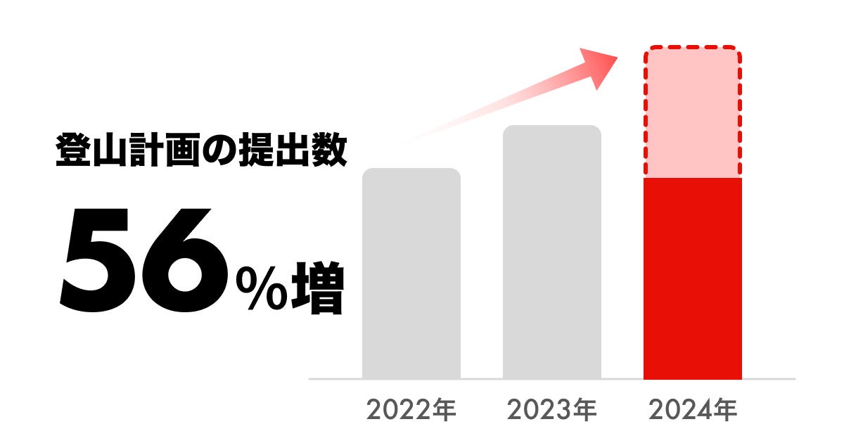 登山届協定を締結した自治体・警察が増えていることもあり、2022年比で56%の増加が予測されます。