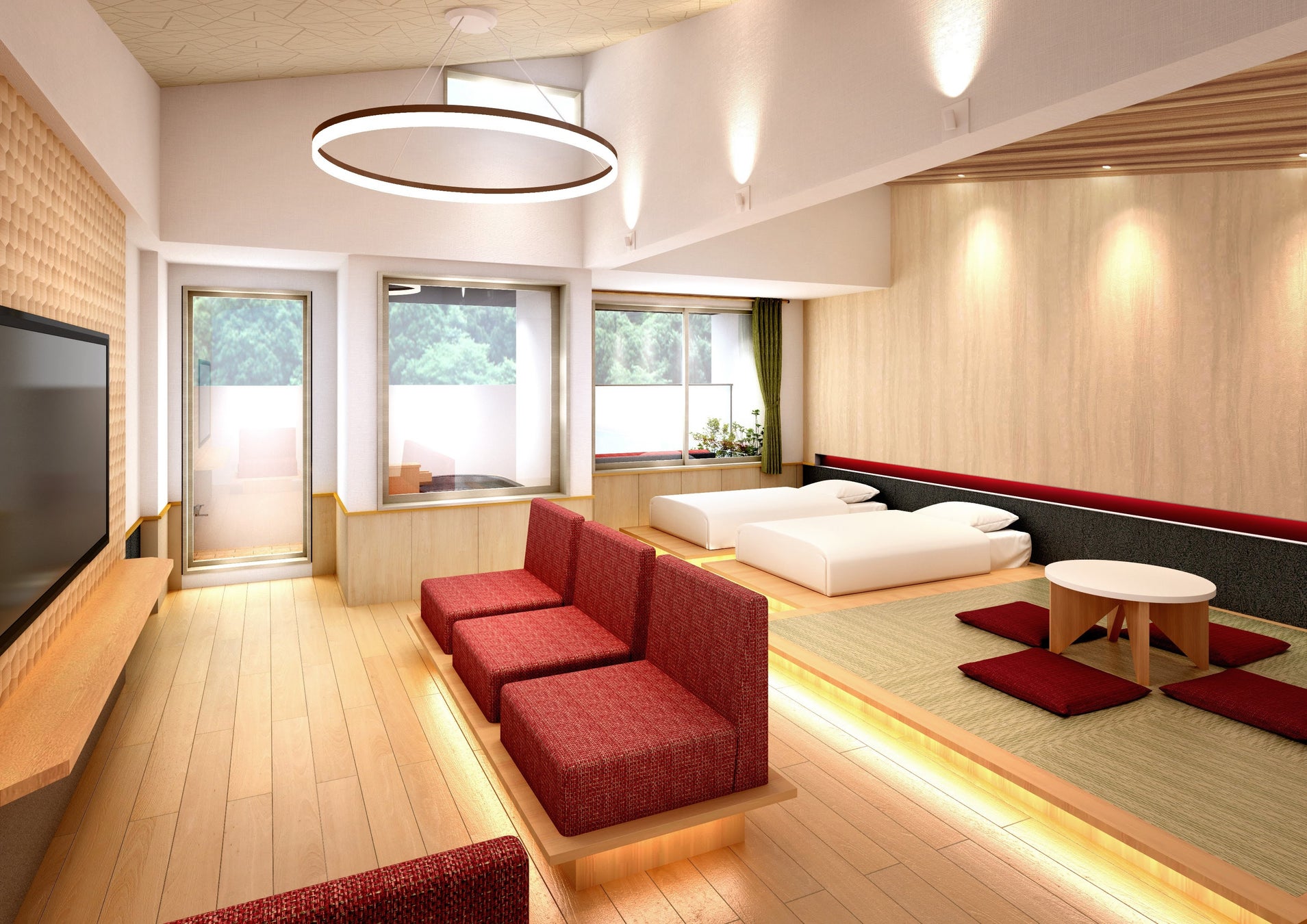 2024年3月に先駆けてリニューアルされた一部の客室は、一の湯グループで初めて導入された「シャワーブース付き客室」を含む、快適な設備と開放的な空間を提供しております。閑静で日当たりの良い立地を活かした、明るく温かみのあるデザインで、お客様からは次のような高い評価を頂戴しております