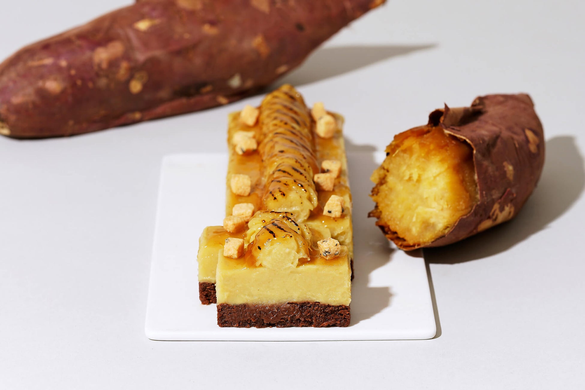 ビターなダークチョコレートの味わいに、ホワイトチョコレートのミルキーな甘さが合わさることで、蜜芋の濃厚な甘味と一体になり心地よい満足感を生み出します。