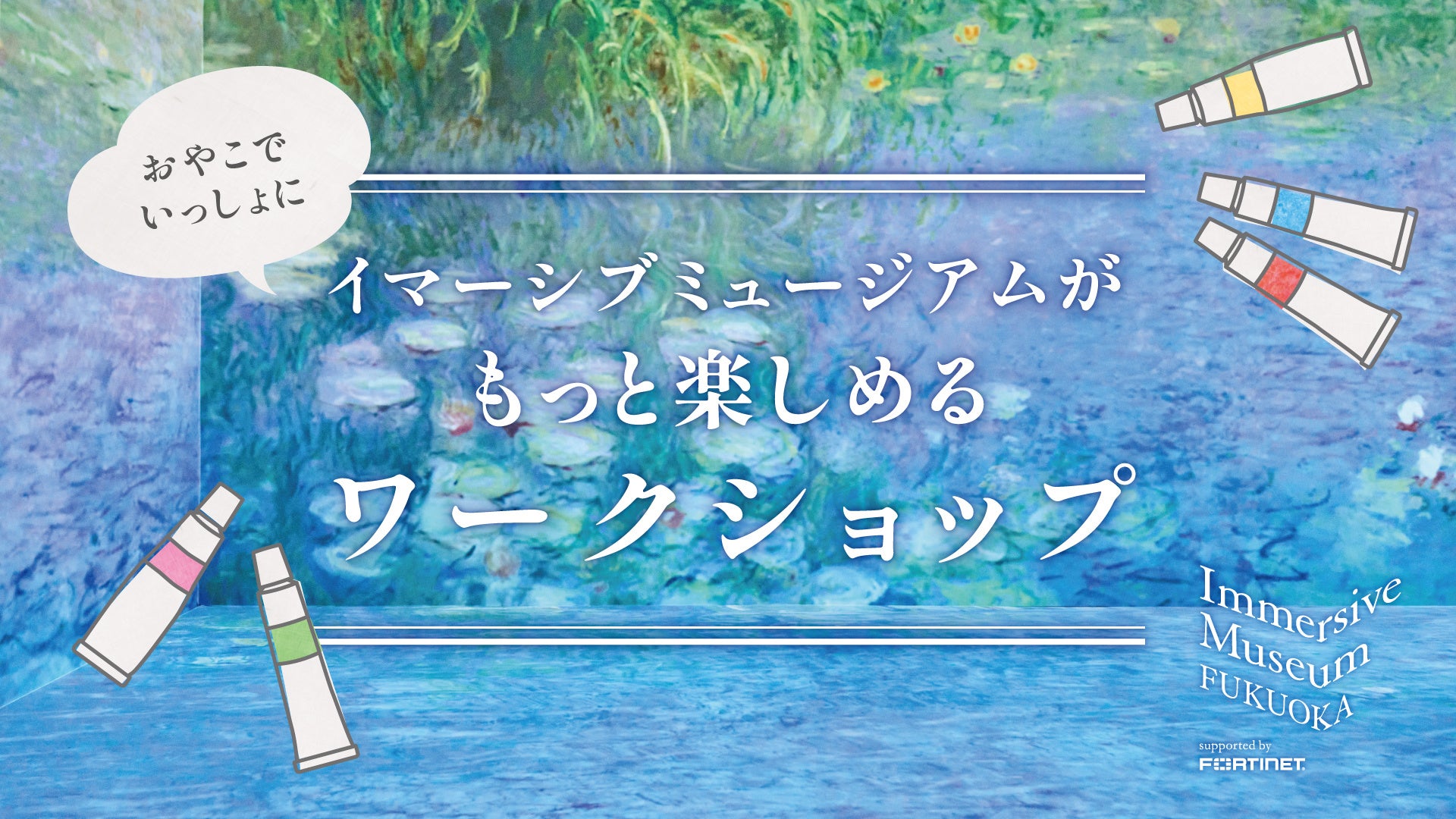 本イベントは、Artist Cafe Fukuoka・大学生ボランティアのご協力のもと、「印象派」の特徴的な技法を子どもと学ぶことで、親子一緒にイマーシブミュージアムをもっと楽しむことができるワークショップです。イマーシブミュージアムは通常の美術館と異なり、声を出したり自由に動き回ったりできるため、ハードルが高いと思われがちなアート体験をより気軽に名画に親しんでいただけます。ここでのアート体験が、お子さまにとっての“初めてのアート体験”になれたらと思い、開催することになりました。