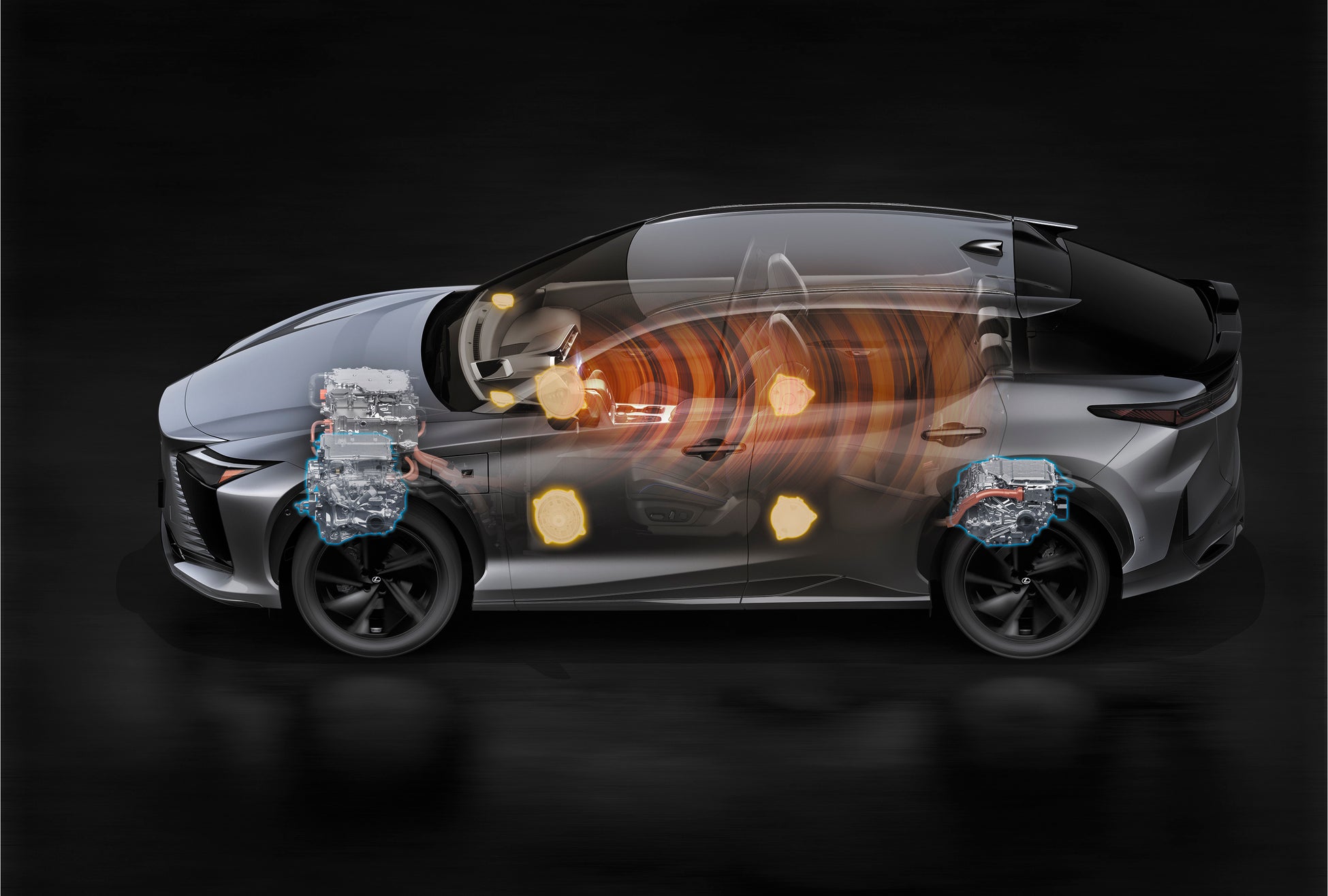 車速や駆動力に連動したサウンドを前後のスピーカーから出力。ダイナミックで臨場感のあるドライビング体験をご提供します。
