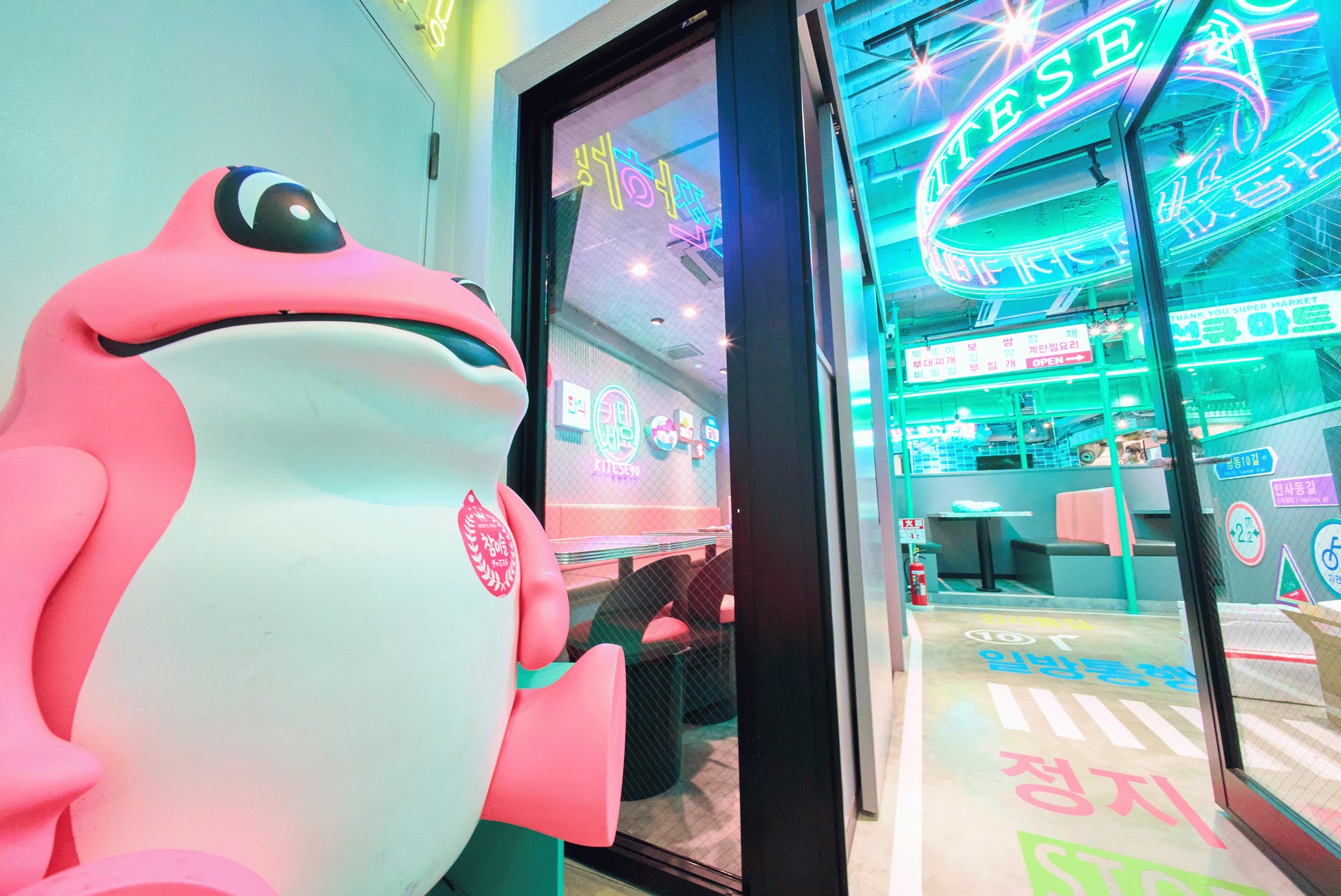 入り口ではチャミスルのマスコットカエルがお出迎え!