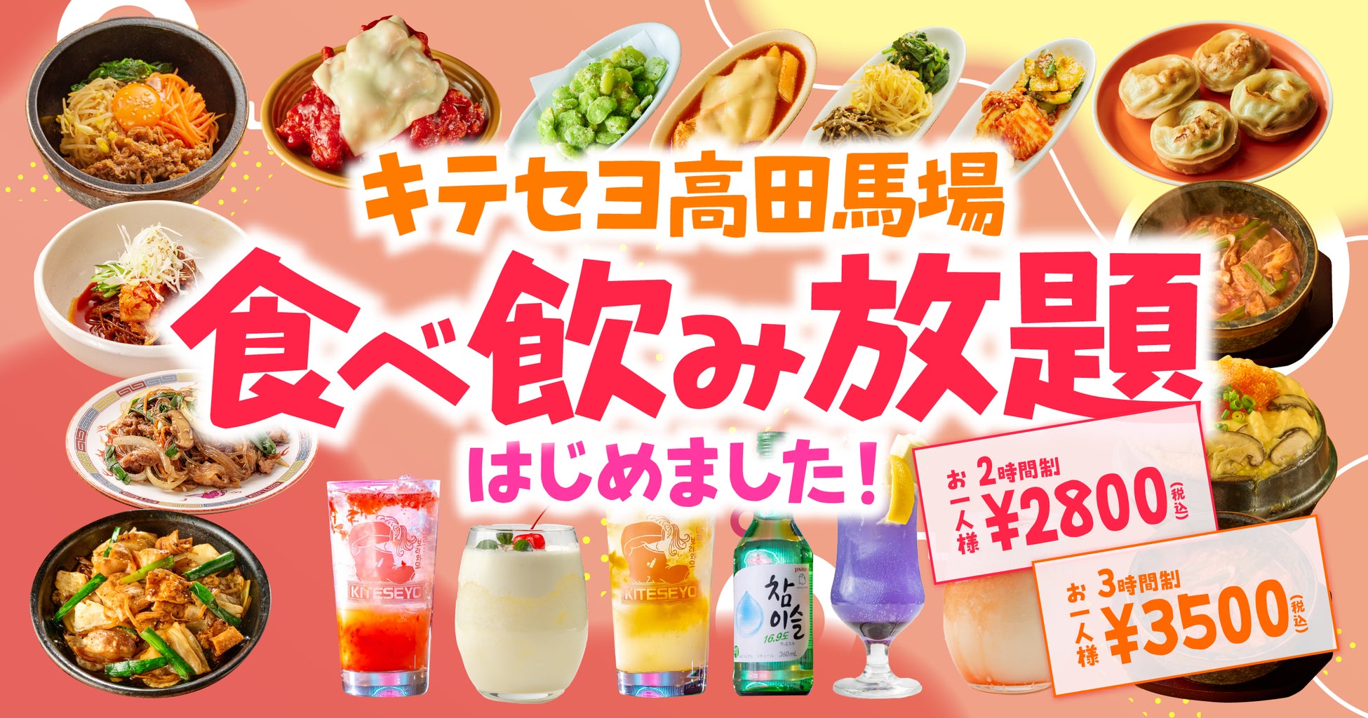サークル終わりの飲み会、ゼミの打ち上げ、忘新年会シーズンにぴったり!キテセヨ高田馬場店に、パワフルな食べ飲み放題コースが新登場!