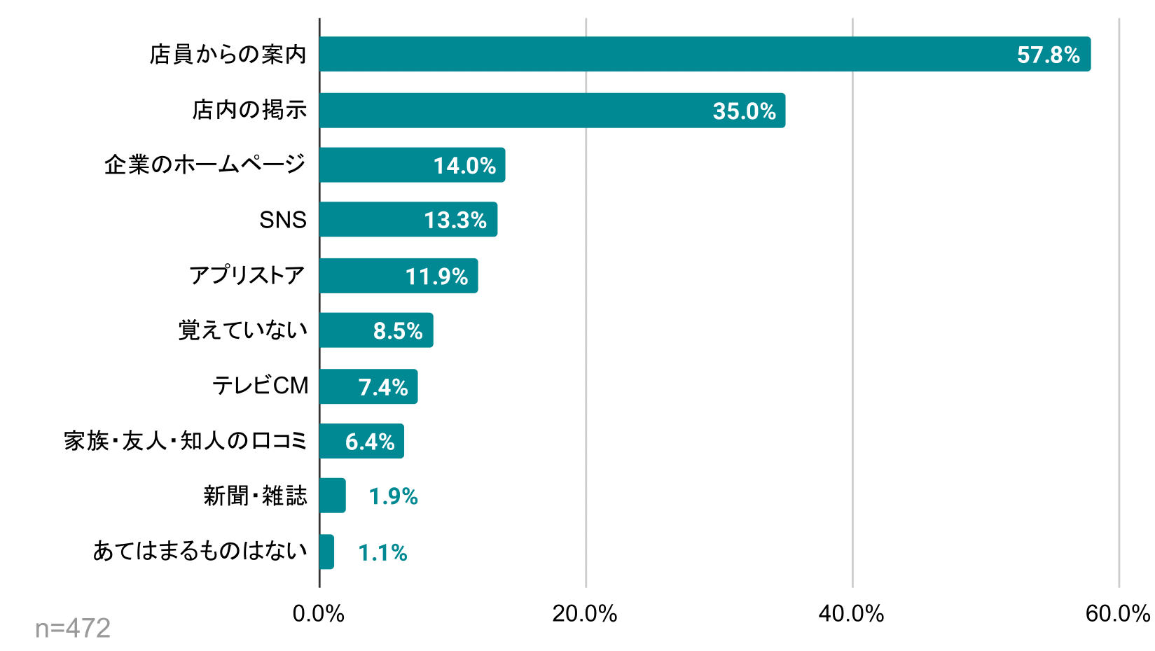 【1】店舗アプリを知ったきっかけは、「店員からの案内」が57.8%