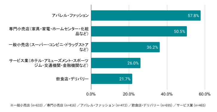 これは、アパレル系の店舗では他業種の店舗よりも商品購入時に店員とのコミュニケーションが多く発生するためだと考えられます。