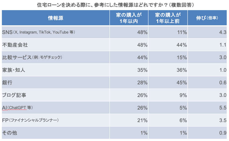 従来、住宅ローンは不動産会社から紹介を受けるのが一般的でしたが、近年はユーザー自身が能動的に探すようになってきています。生成AIの浸透がさらに後押しするものと考えられます。