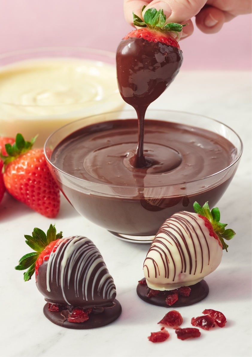 また、福岡県うきは市から直送される、新鮮で大粒なあまおう苺を使用した「ストロベリーディップ」が、アトリエ ドゥ ゴディバ 博多阪急限定で登場。甘酸っぱくジューシーなあまおう苺をダーク/ホワイトチョコレートでコーティングし、ドライクランベリーを添えました。