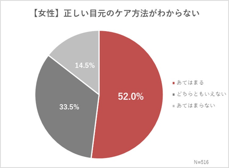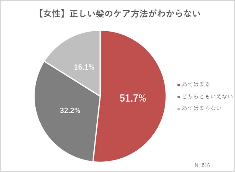 今回の調査では、髪や目元が印象を左右することへの意識が高いことが分かった一方で、「正しいやり方が分からない」と感じている女性が半数以上いることが浮き彫りになりました。具体的には、「正しい髪のケア方法が分からない」と回答した女性は51.7%、「正しい目元のケア方法が分からない」という回答も52.0%と半数以上にのぼりました。