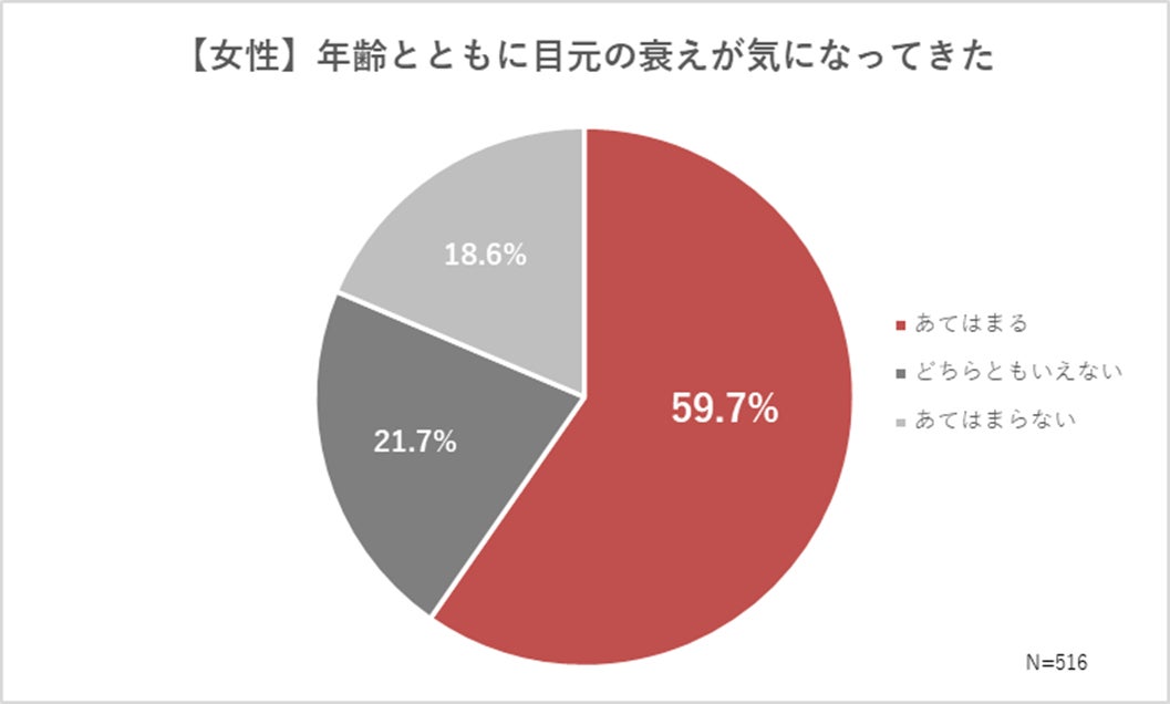 「年齢とともに目元の衰えが気になってきた」層が6割弱存在している。