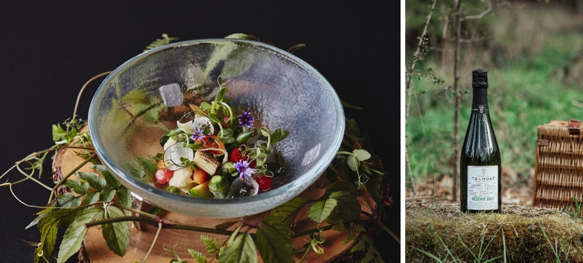TENJINでは、「自然・芸術・料理」をモチーフに、季節の恵みや地元食材を贅沢に使用したフランス料理を提供。シグニチャーディッシュには、自社農園で栽培したハーブや花、京都の季節の野菜をワンプレートに美しく盛りつけた一皿があり、今回のコラボレーションでは、このシグニチャーディッシュを中心に、こだわり抜いた器と共にご用意する料理をお楽しみいただけます。イベントでは、妥協なく環境に配慮したシャンパーニュ造りに取り組み続けるテルモンを、コース全体を通じて、一皿一皿それぞれにペアリングし、たゆたう時に身を委ね、大人だけに許される珠玉のマリアージュをご堪能いただくことができます。さらに、ディナー時はここでしか味わえないレゼルヴ・ロゼをマグナムボトルにてご提供します。