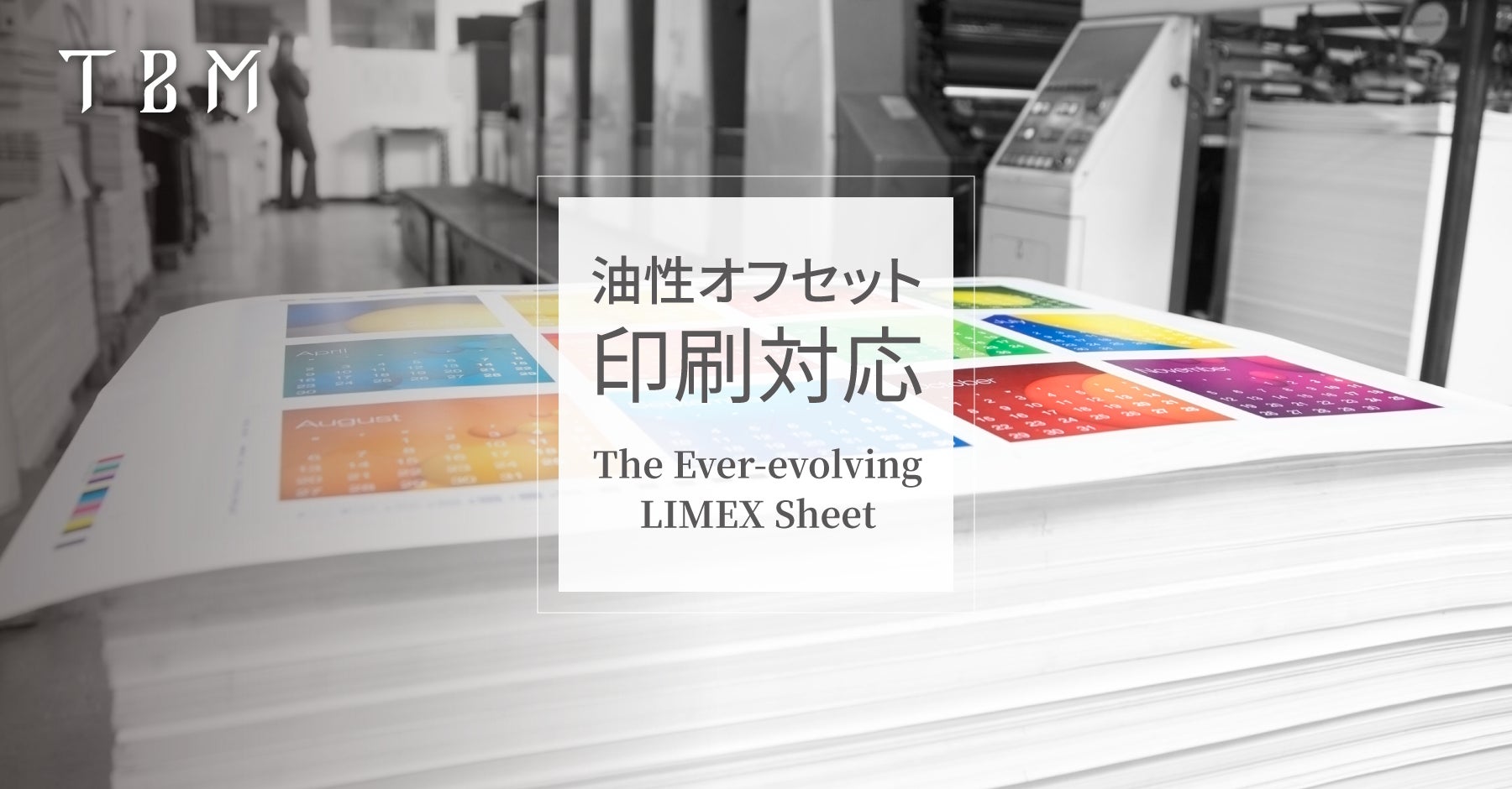 株式会社TBM(本社:東京都千代田区、代表取締役CEO:山﨑敦義、以下TBM)は、油性オフセット印刷に対応可能な「LIMEX Sheet(ライメックスシート)」を開発しました。LIMEX Sheet 80μmから随時製品ラインアップを拡大して参ります。