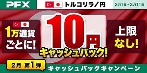 「トルコリラ/円」1万通貨ごとに10円キャッシュバック