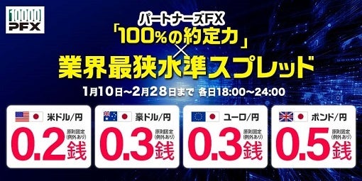 株式会社 マネーパートナーズ(代表取締役社長:福島秀治、本社:東京都港区、以下「当社」)では、「パートナーズFX」で業界最狭水準のスプレッド縮小キャンペーンを実施しております。