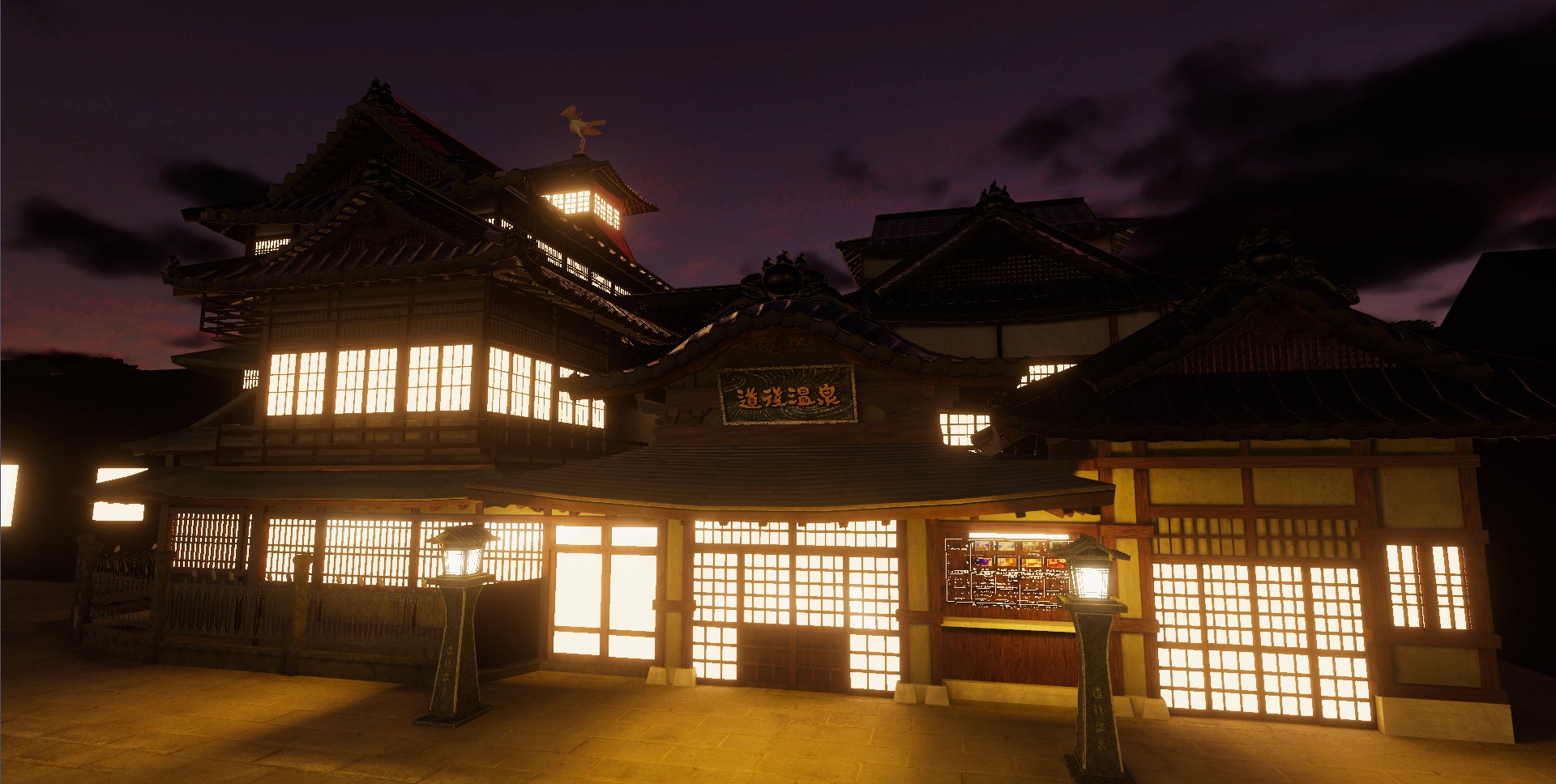道後温泉本館および道後温泉別館 飛鳥乃湯泉を再現。イベント会場として使用可能。