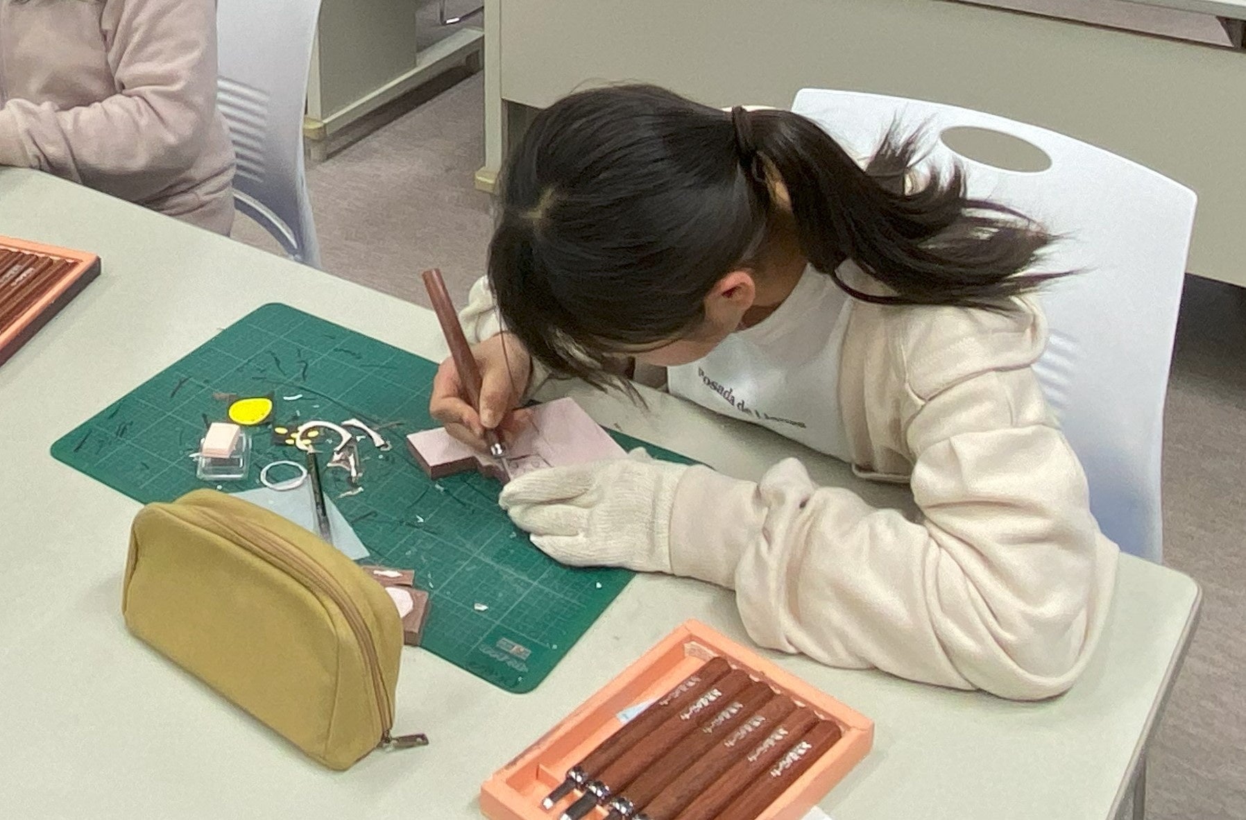 また、パッケージのゆずのモチーフは、子どもたちがひとつひとつ「消しゴムハンコ」で作成。慣れない彫刻刀でケガをしないよう気を付けながら、村のシンボルである「ゆず」を心を込めて表現しました。