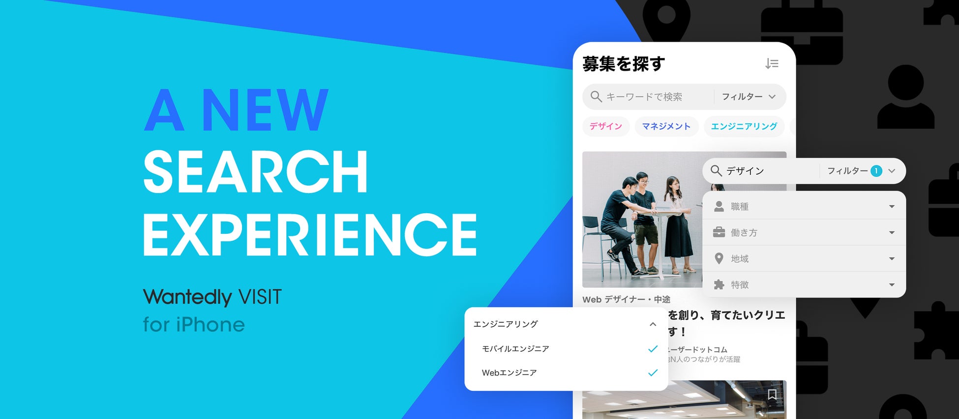 気軽に会社訪問できるサービス「Wantedly Visit」、iPhone向けアプリの検索画面をリニューアル