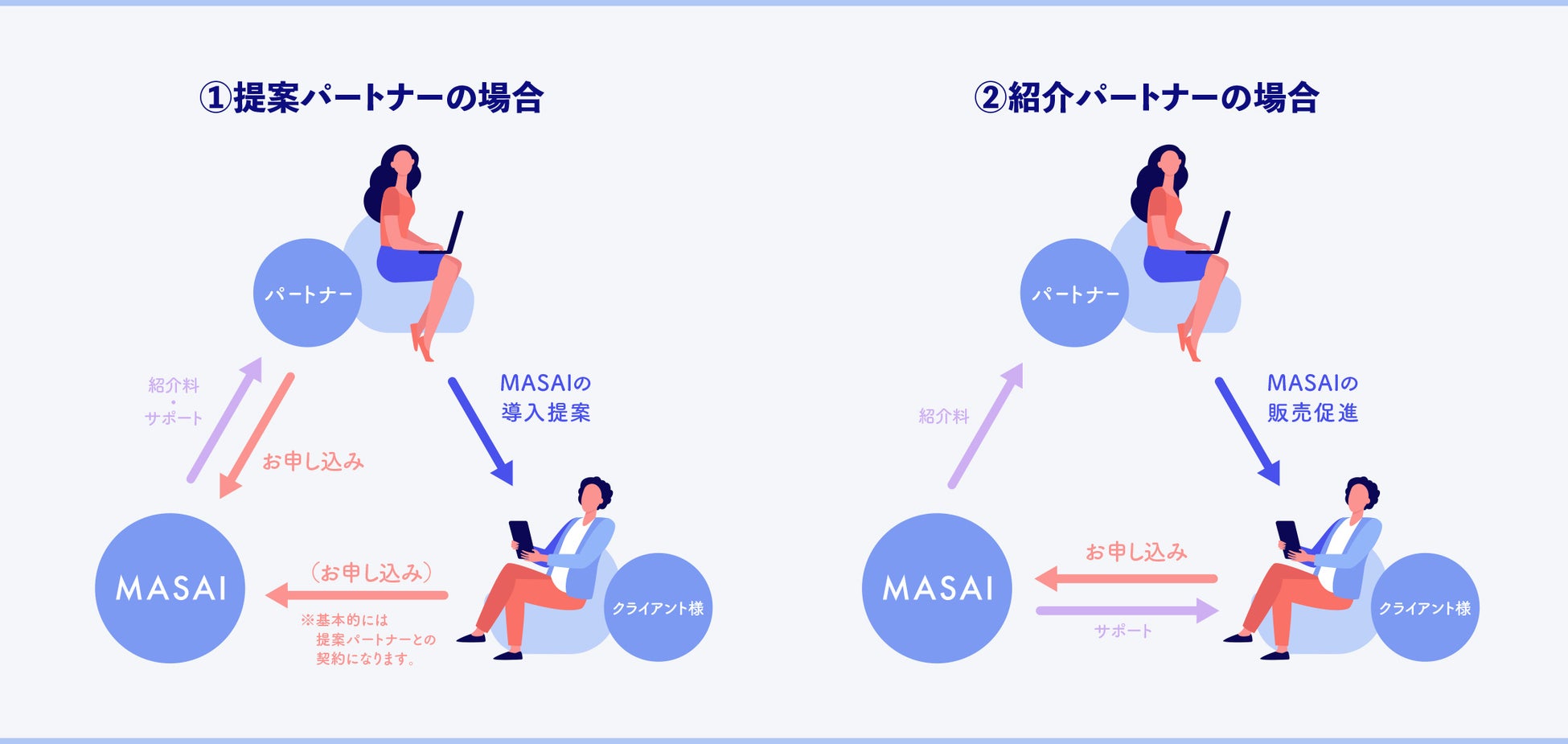 パートナー企業様からクライアント様に対し、MASAIをご紹介いただくケースを想定しています。