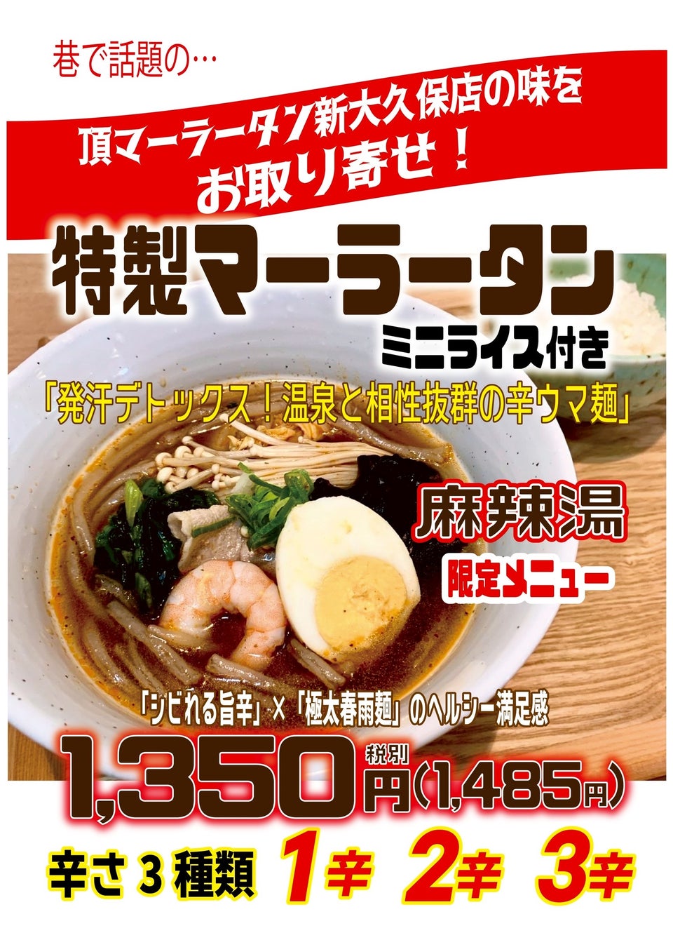 ◻︎裾野温泉 ヘルシーパーク裾野にておうちでマーラータン | 頂マーラータンの麻辣湯を提供スタート!